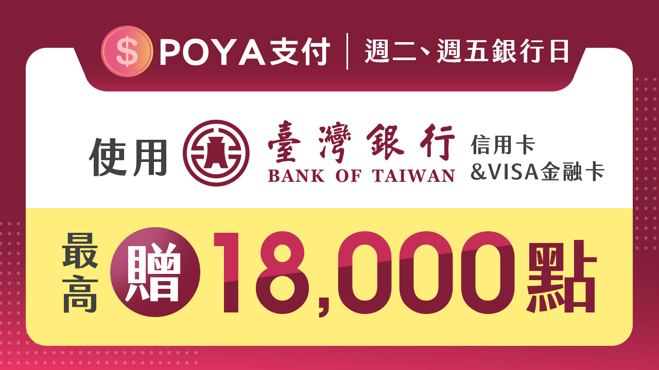 臺灣銀行信用卡/VISA金融卡綁定POYA支付週二/週五享回饋