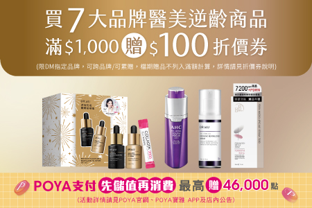 7大醫美臉部逆齡保濕指定商品滿$1,000送$100折價券
