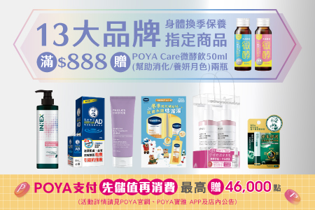 13大品牌身體換季保養指定商品滿$888 贈POYA Care微酵飲50ml指定品項任兩瓶