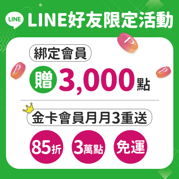 活動期間於寶雅LINE官方帳號,首次綁定LINE行動會員卡,贈寶雅點數3,000點。