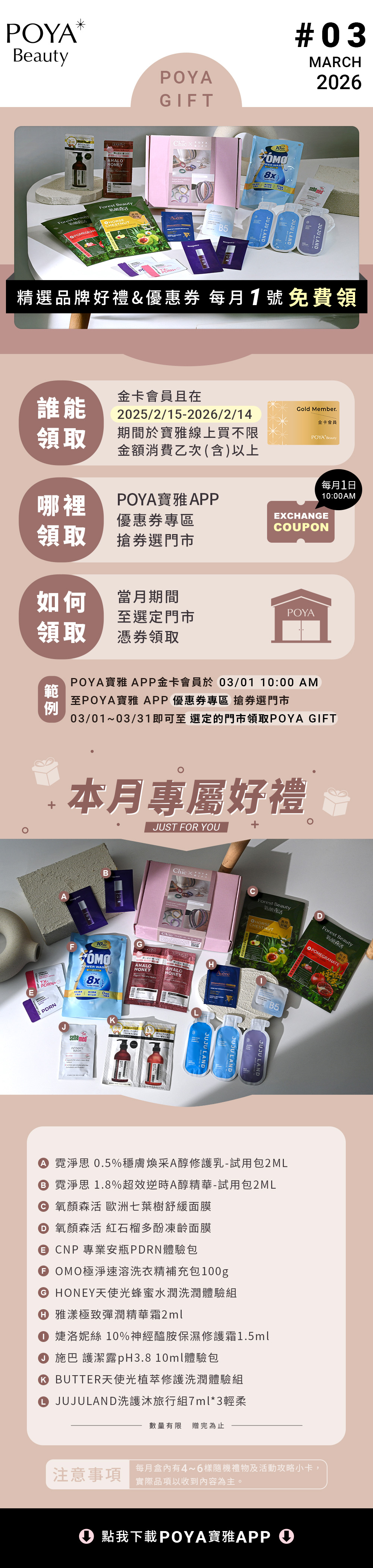 2026 POYA GIFT金卡會員禮遇說明