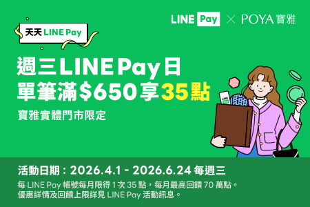 【寶雅門市】每週三用LINE Pay,單筆滿額享LINE POINTS 35點回饋!